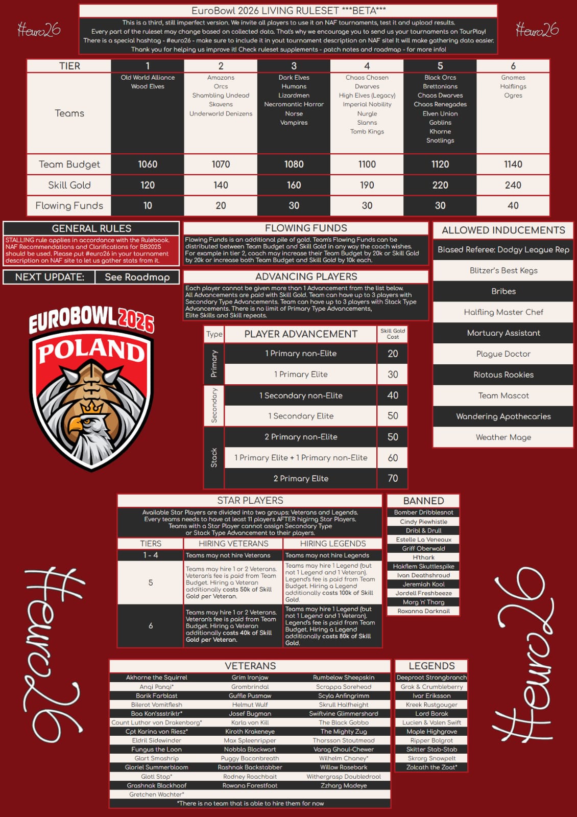 Radunate i vostri compagni di squadra, affilate le lame degli stivali chiodati e lucidate le corazze, sta per partire il Torneo a Squadre di Blood Bowl dove: strategia, violenza e spirito di squadra si fonderanno per decretare il miglior team del circuito!